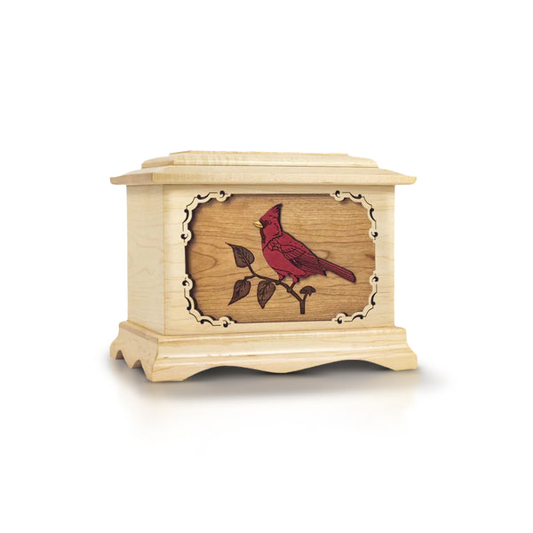 Cardinal 3D Engraved White Maple Urn